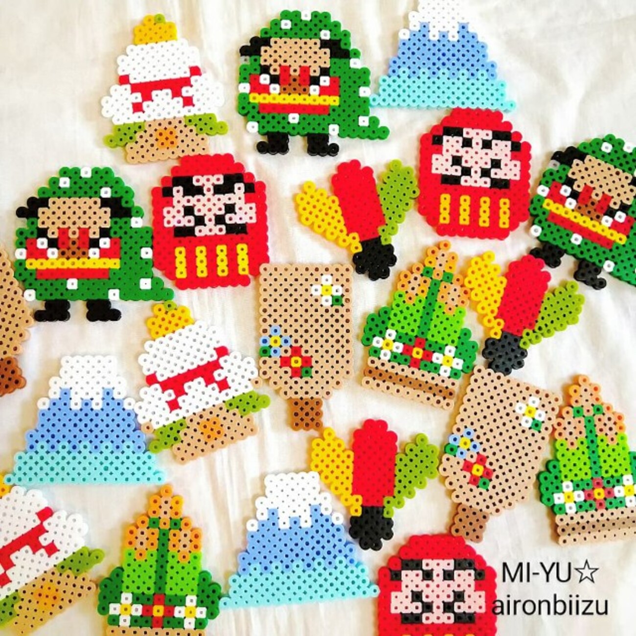 定番の門松や鏡餅、干支の動物、縁起の良いモチーフなどどれも簡単に作れるものばかりです。