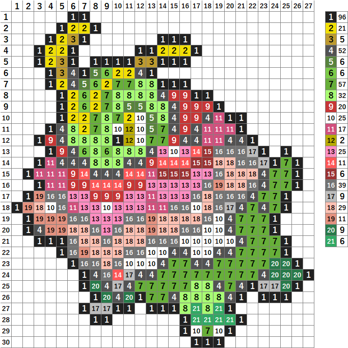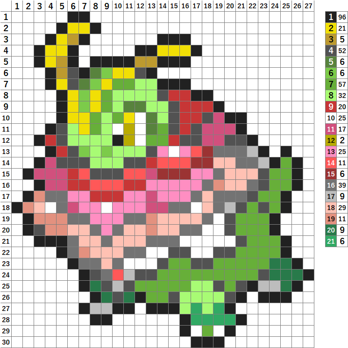 今回はポケモンのメガメガニウムのドット絵です!アイロンビーズやアクアビーズ、マイクラ、クロスステッチの図案にどうぞ。