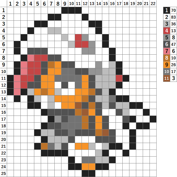 今回はポケモンのメガズルズキンのドット絵です!アイロンビーズやアクアビーズ、マイクラ、クロスステッチの図案にどうぞ。