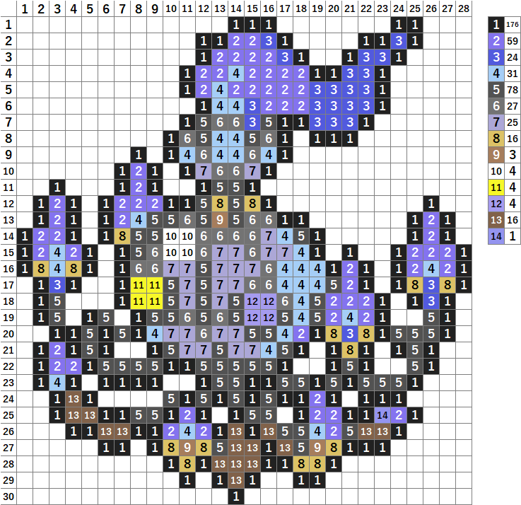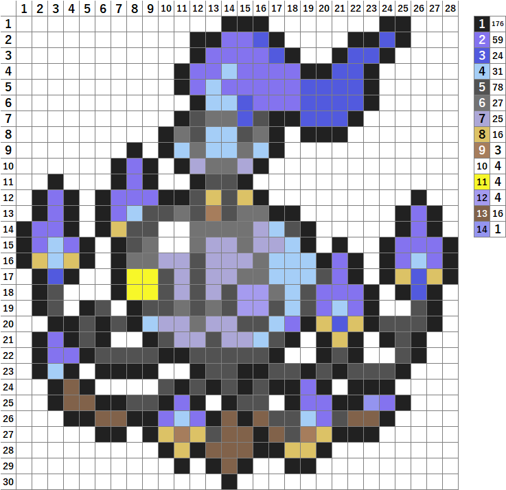 今回はポケモンのメガシャンデラのドット絵です!アイロンビーズやアクアビーズ、マイクラ、クロスステッチの図案にどうぞ。