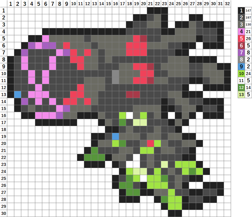 今回はポケモンのメガジガルデのドット絵です!アイロンビーズやアクアビーズ、マイクラ、クロスステッチの図案にどうぞ。