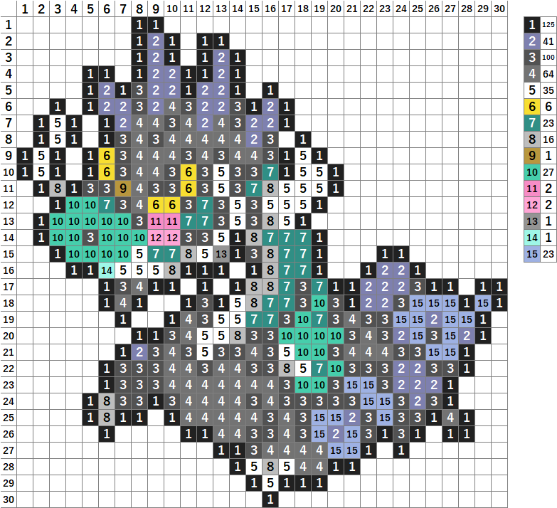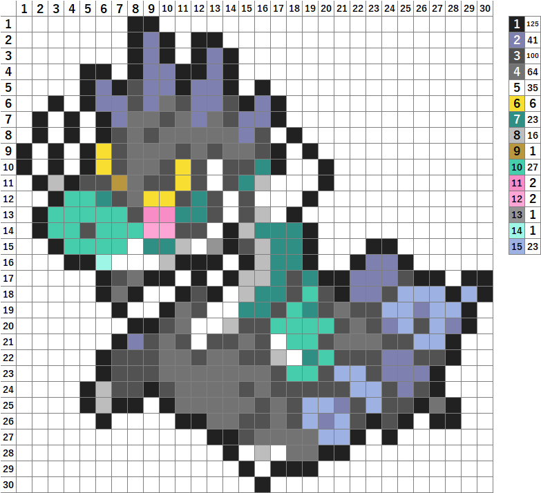 今回はポケモンのメガジジーロンのドット絵です!アイロンビーズやアクアビーズ、マイクラ、クロスステッチの図案にどうぞ。