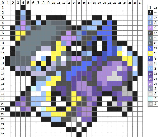 今回はポケモンのミライドン(ライドフォルム)のドット絵です!アイロンビーズやアクアビーズ、マイクラ、クロスステッチの図案にどうぞ。