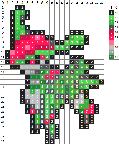 今回はポケモンのテツノイサハのドット絵です!アイロンビーズやアクアビーズ、マイクラ、クロスステッチの図案にどうぞ。