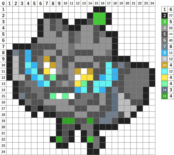 今回はポケモンのオーガポン(いしずえのめん)のドット絵です!アイロンビーズやアクアビーズ、マイクラ、クロスステッチの図案にどうぞ。