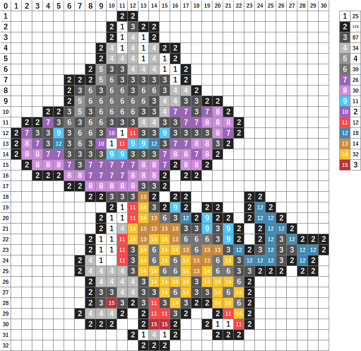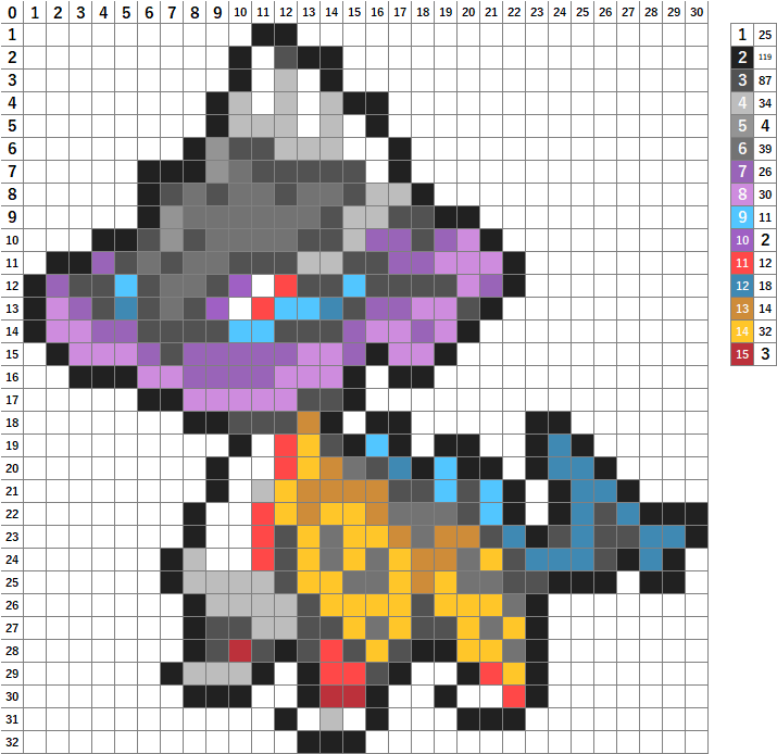 今回はポケモンのタケルライコのドット絵です!アイロンビーズやアクアビーズ、マイクラ、クロスステッチの図案にどうぞ。