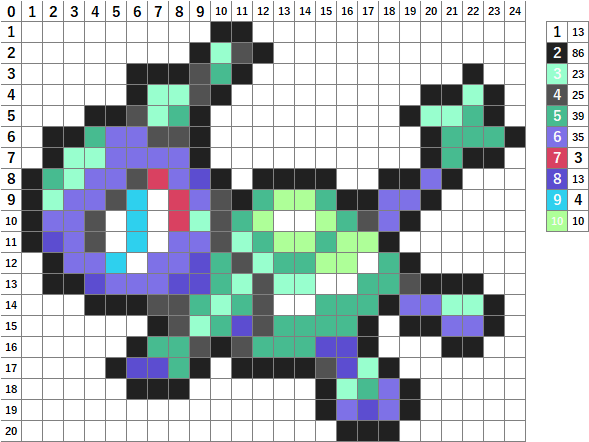 今回はポケモンのテラパゴス(ノーマルフォルム)のドット絵です!アイロンビーズやアクアビーズ、マイクラ、クロスステッチの図案にどうぞ。