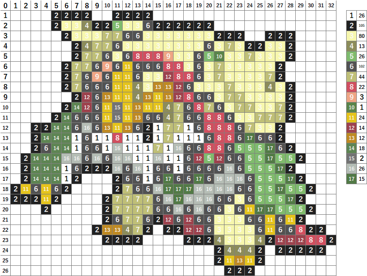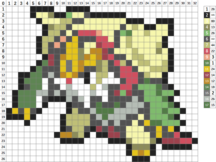 今回はポケモンのメガブリガロンのドット絵です!アイロンビーズやアクアビーズ、マイクラ、クロスステッチの図案にどうぞ。