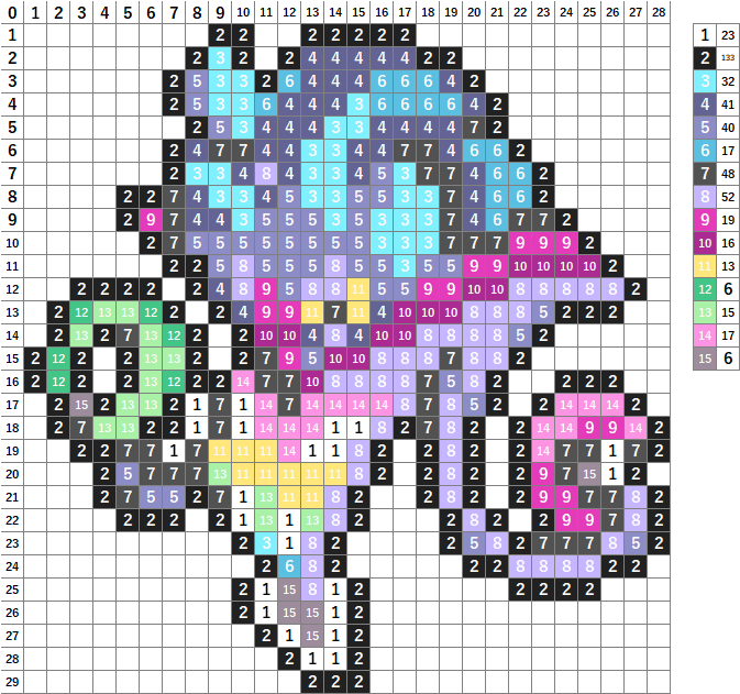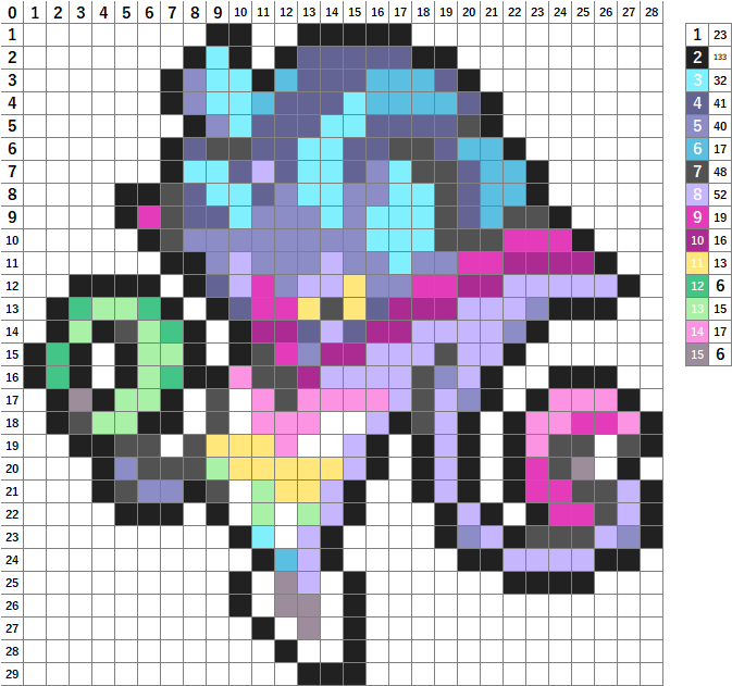 今回はポケモンのメガカラマネロのドット絵です!アイロンビーズやアクアビーズ、マイクラ、クロスステッチの図案にどうぞ。