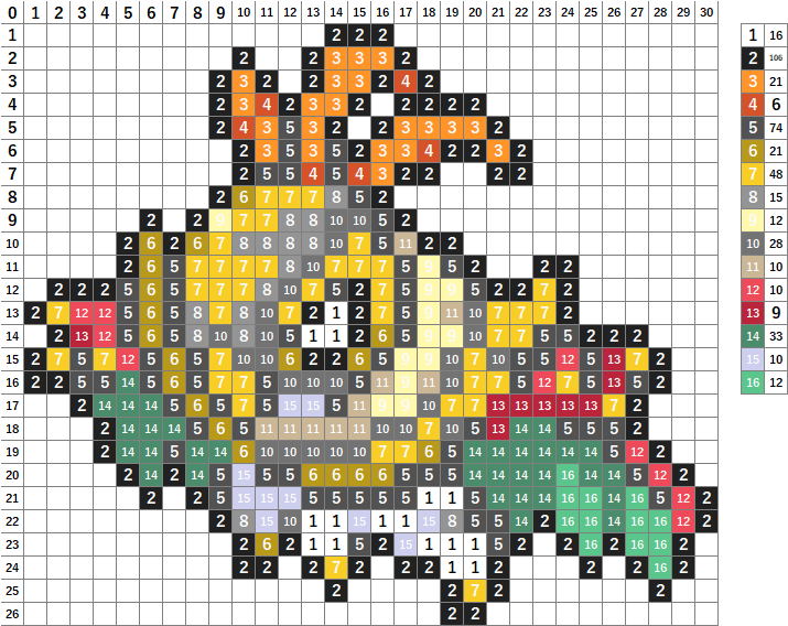 今回はポケモンのメガルチャブルのドット絵です!アイロンビーズやアクアビーズ、マイクラ、クロスステッチの図案にどうぞ。