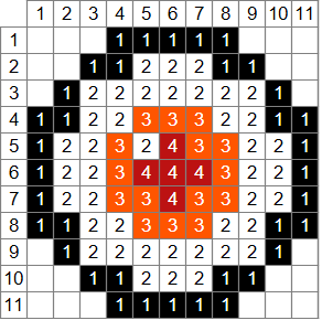 今回はハロウィンの目玉のドット絵です!アイロンビーズやアクアビーズ、マイクラ、クロスステッチの図案にどうぞ。